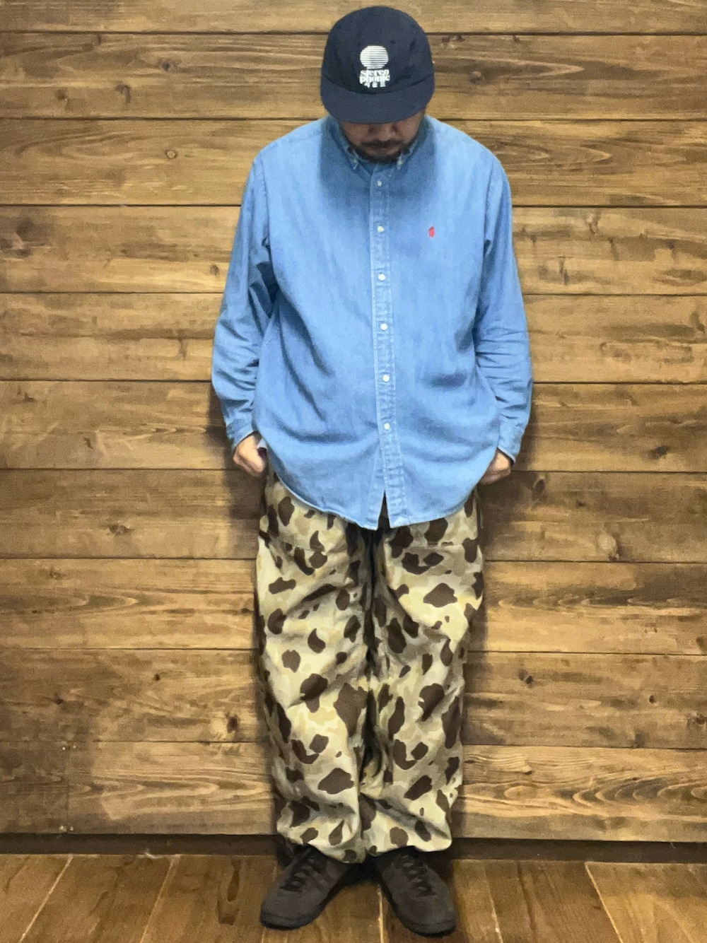 ご覧頂きまして、ありがとうございます😊 ラルフローレンのデニムシャツにカモ柄のパンツを合わせた、少し遊び心のある普段着です。 足元はadidasのTobaccoで落ち着いた印象に。あくまで気負わず、自分なりにバランスを意識してみました。