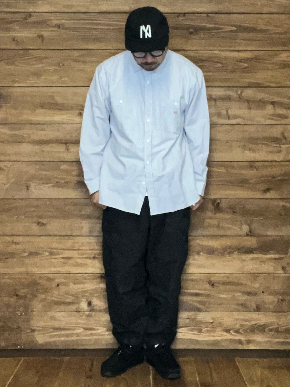 キャップ:COOPERSTOWN シャツ:SMITH’S パンツ:PROPPER シューズ:Clarks Wallabee シンプルにまとめたアメカジミックス。 オーバーサイズシャツ×ミリタリーパンツのバランスがちょうどいい。 ゆるめな足元にワラビーを合わせて抜け感も意識しました。