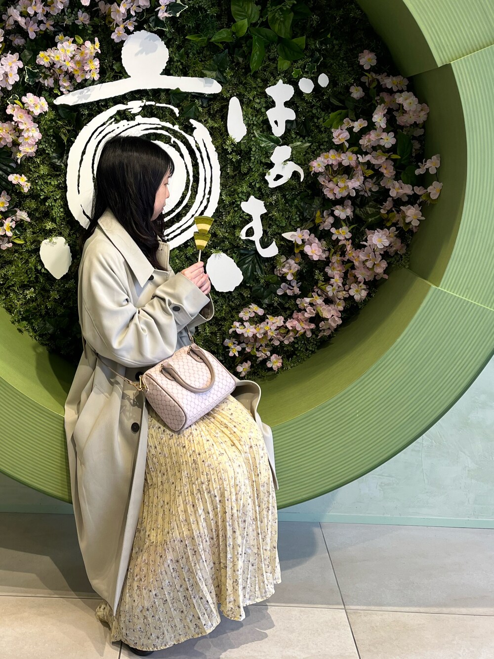 嵐山で食べ歩き 少し肌寒かったけどお昼は暖かったのでコートにワンピースでちょうどよかった😌 アウターはGUのメンズコートでサイズ感ぴったりで冬春着れて優秀すぎる🌟 黄色の花柄ワンピースお気に入りで春のうちにたくさん着よう⸜🌷︎⸝