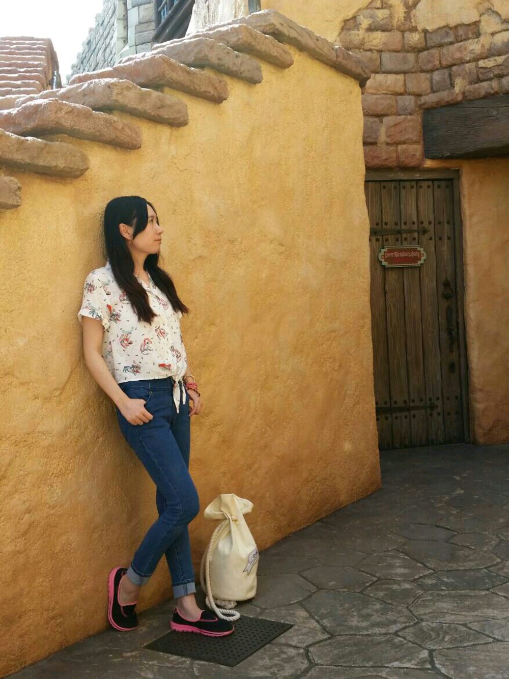 ディズニーで動き回る快適な楽チンコーデ☆ アロハシャツ?ボウリングシャツ?系が50,sっぽくてレトロっぽくて好きです♪