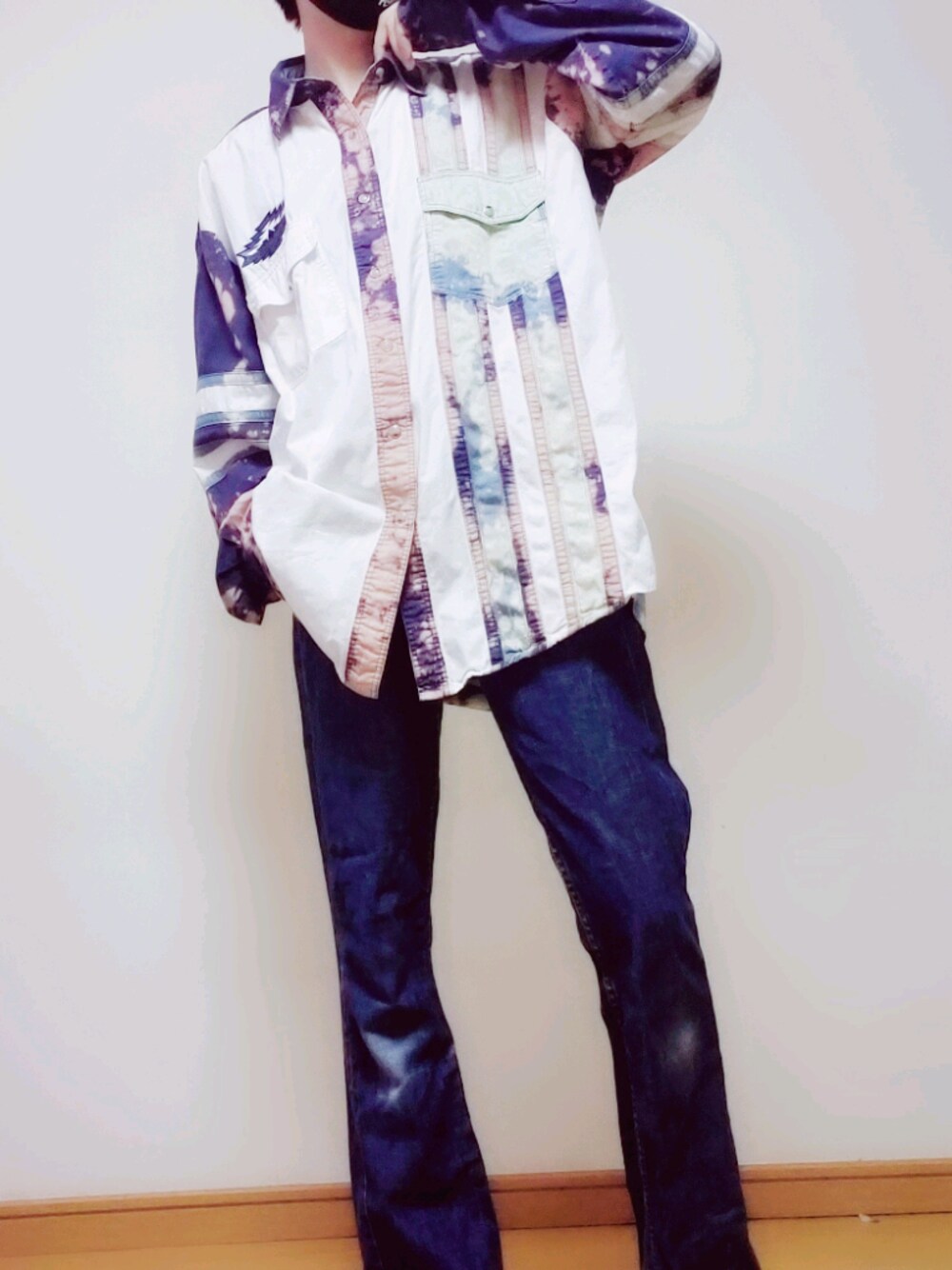 アメカジコーデ 古着屋yutoriさんで購入したWranglerのシャツなんですけど、このブリーチ加工は唯一無二です。 ボトムは頂き物のLevi's。 もう10年は履いてますね。