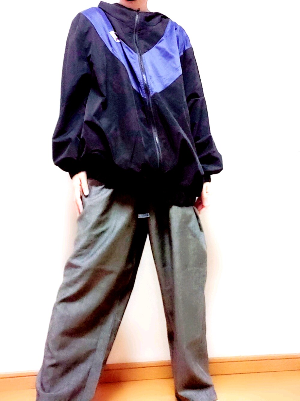 放課後の部活生(チャリ通)コーデ イラストレーターのnikiさんがデザインしたIROIROのパーカーと古着屋さんのグレースラックスと合わせてみました。 なんかチャリ通してそうじゃないですか?