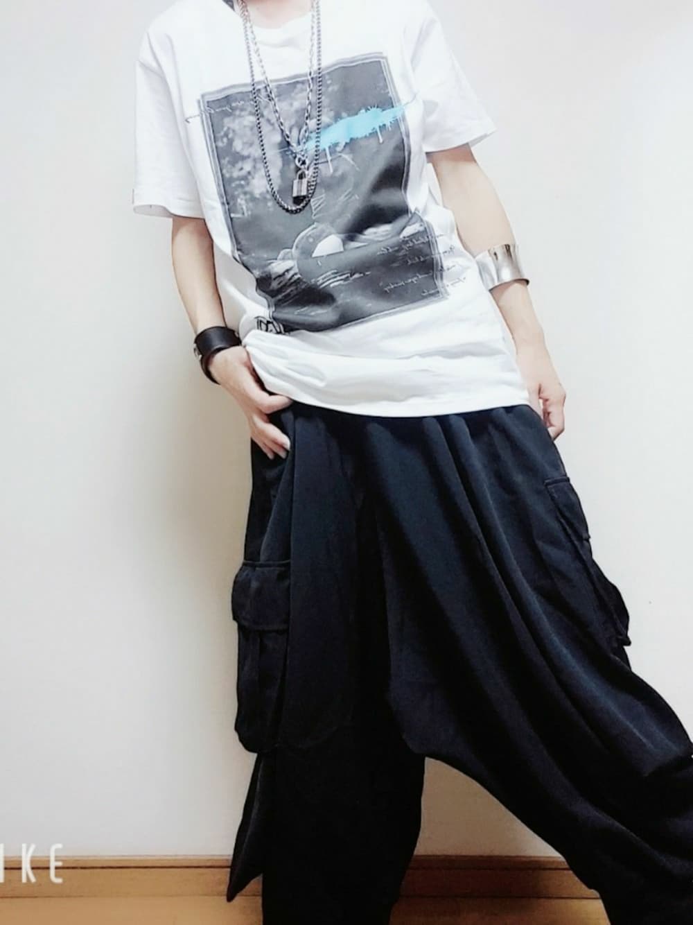 DEATHBEAR LIVE ON MUIZKさんのRTプレゼント企画で当選したTシャツです。 ゆったりサルエルパンツと合わせて。
