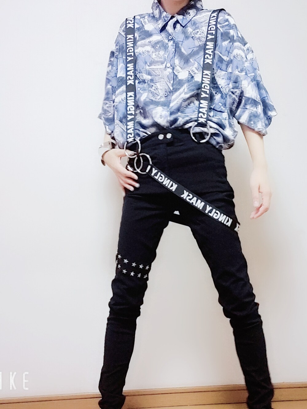 古着屋CIWさんのBOXに入ってた総柄シャツです。肌触り、着心地良く、状態も良く。さらっと羽織れちゃいます。 KINGLYMASKのスキニーパンツと合わせて、サルエルパンツに付属されているサロペットでちょっと遊んでみました