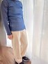 深い青のシアートップスはcoenで買ったもの💙 インナーにボーダーノースリーブを合わせました。 今日は少し寒いので、ロングガーデも着ます!