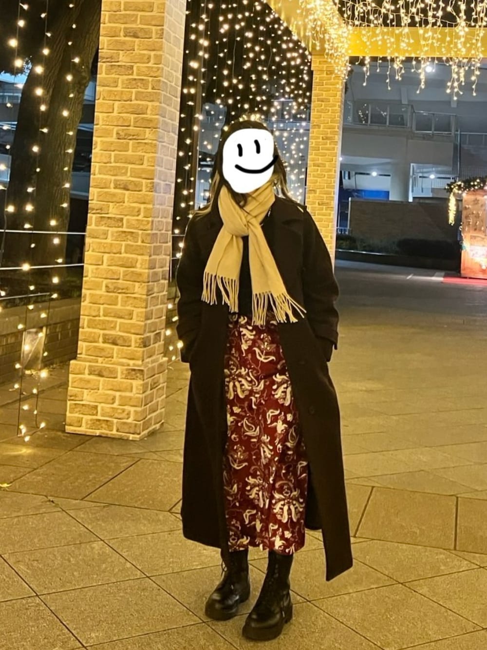 オフィスの近くでクリスマスマーケットがやっていたので、仕事着のまま街に駆け出しました🎄🎅 強風で髪の毛が大変なことに!! なので顔落書きしてます😃