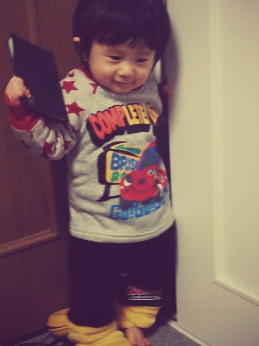 トイザらスで買った温か上下です。男の子っぽい組み合わせですが、意外と似合ったのでは。。と思います(*^_^*)