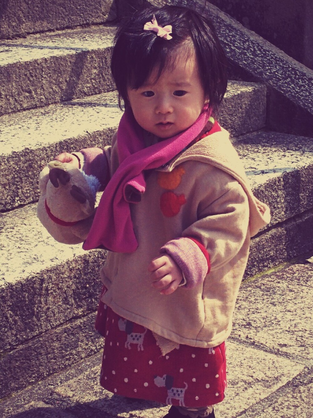 旅行なので、可愛いワンピースでおめかし(*˘︶˘*).。.:*♡マフラーはベルメゾンので、リバーシブル。