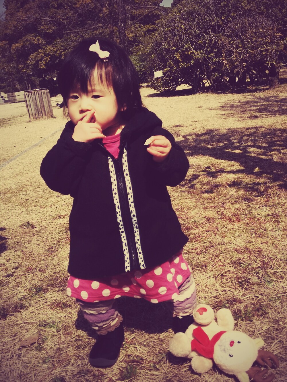 旅行先にて。手作りのフリースパーカーとお気に入りの水玉ワンピース(ジャンスカ)♥結婚式用に買ったフリフリのレッグウォーマーでかなり可愛らしいコーデ(*˘︶˘*).。.:*♡
