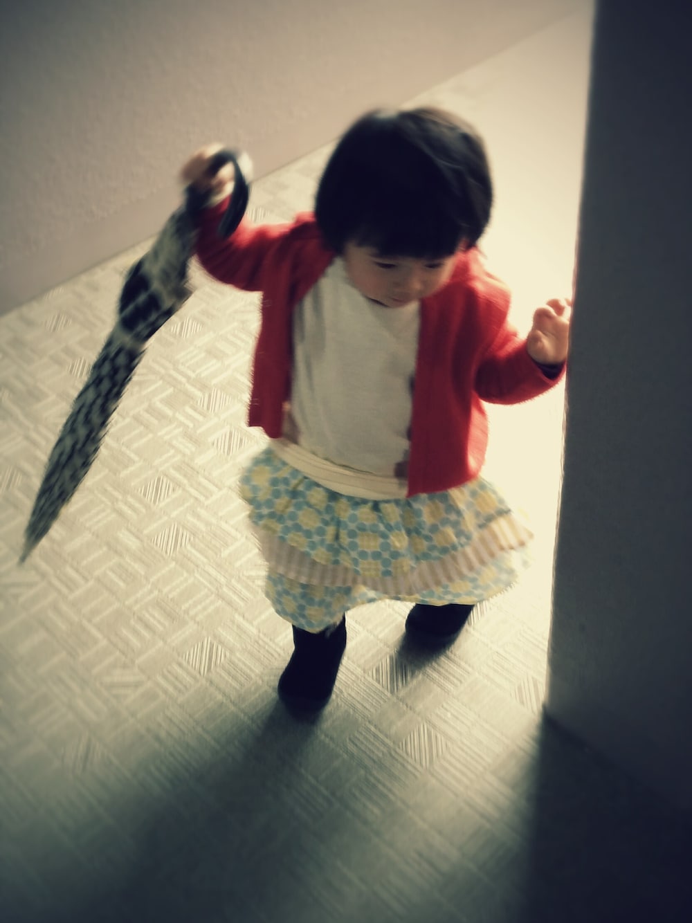 久々にちゃんと洋服着せておでかけです。スカートは手作りでフリフリです♥傘がまたブーム中。。