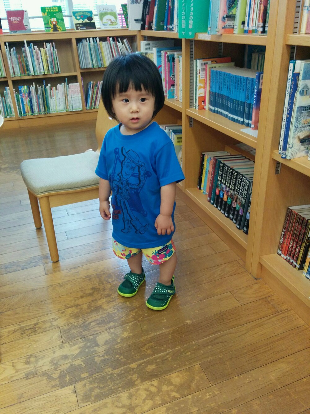 ワゴンセールで買ったユニクロのティシャツ。サイズ100と大きめなのです。