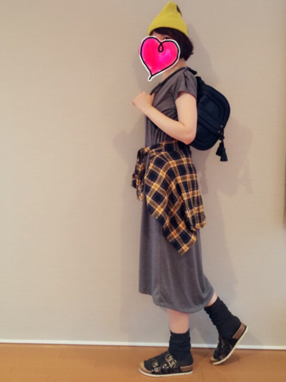 着心地の良いワンピと履き心地の良いサンダルでリラックスコーデ♡☕️ 全体的に暗めなので、帽子とシャツをイエローにして差し色に😊🌼