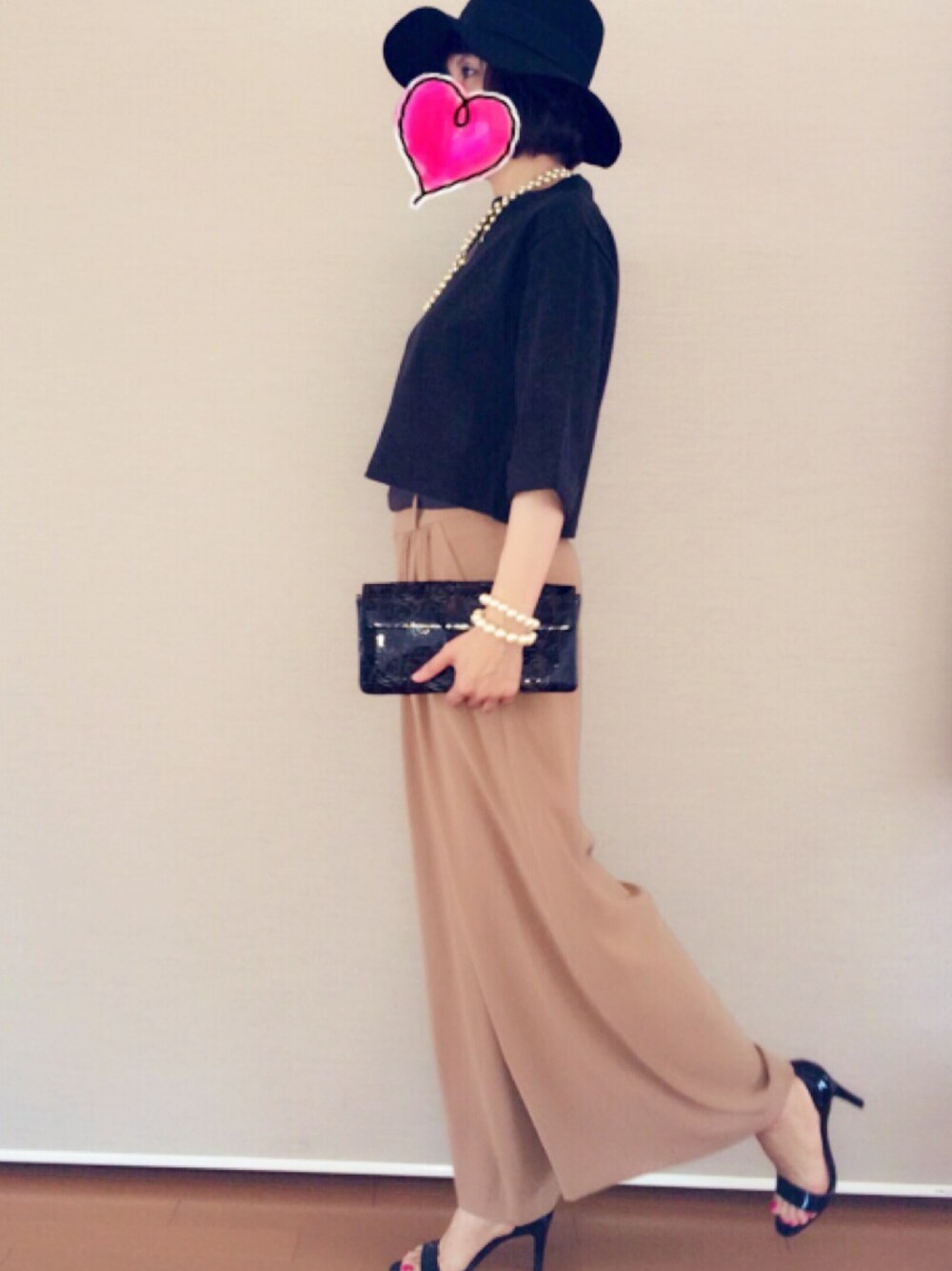 秋のお食事会コーデ✨🍴😋 パンツ以外は暗めの色で抑えて。 コットンパールのアクセスをプラスしてお上品に✨👩