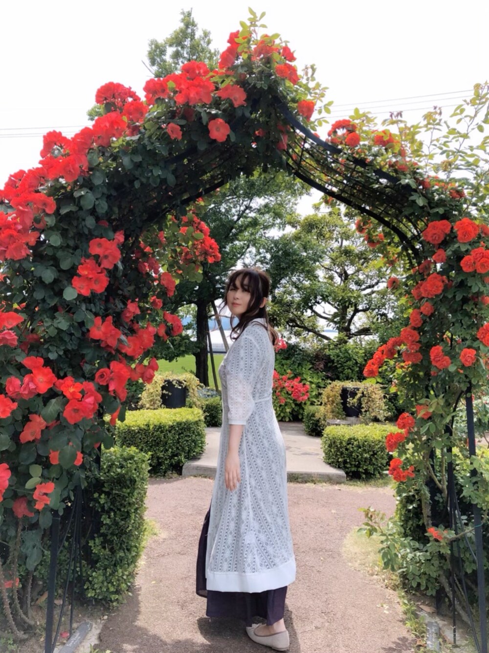 薔薇ガーデン 今日は薔薇にあうレースのカーデをあわせました。