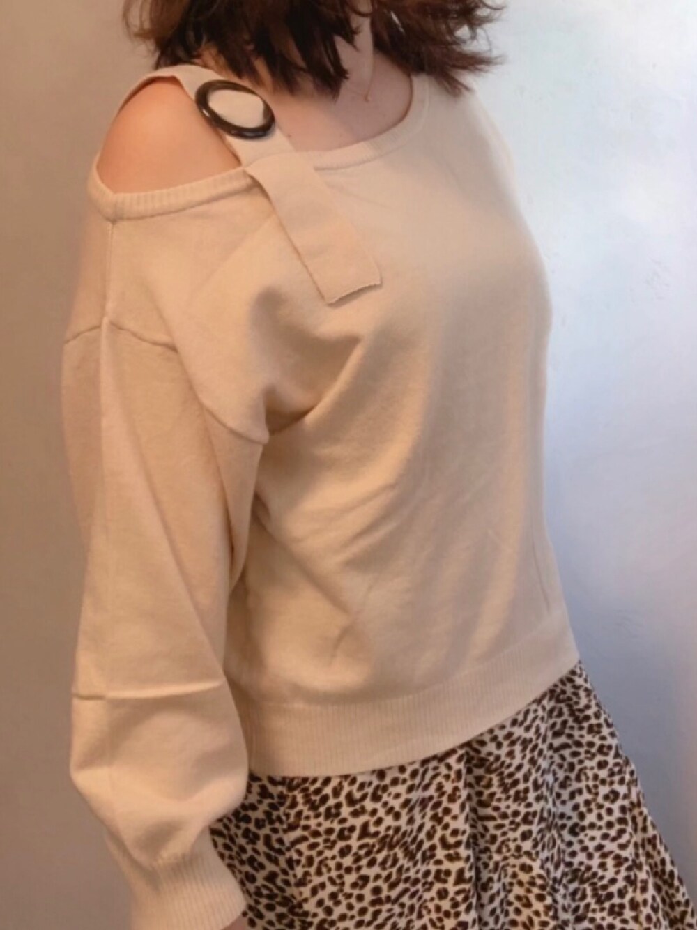 ベージュのショルダーニットかわいい💕
