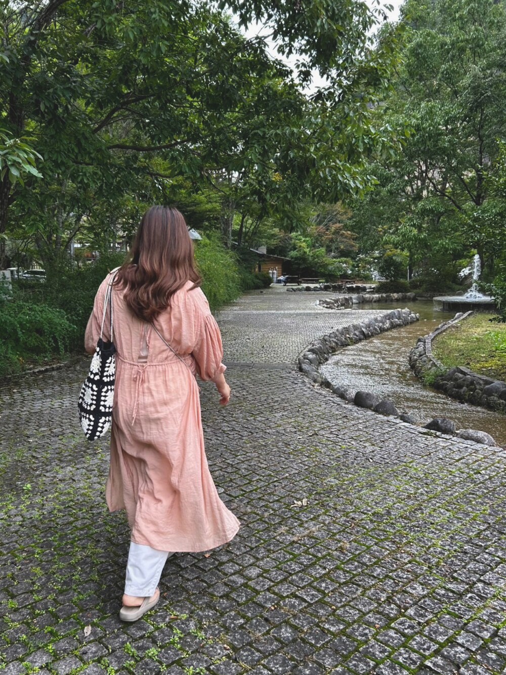 かわいすぎないけど可愛すぎるピンク🌻 バックリボンも付いてるけど 紐リボンだから可愛くなりすぎない ところがお気に入り〜😮💨🧡 去年から滝めぐりハマっております🫧 でっっっかい滝とか行きたいな〜