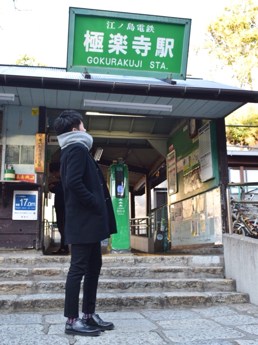 黒を基調としたコーデ!! やっぱり黒は最高ですね☺️☺️ マフラー、靴下で少し色をつかって 外してみました(#^.^#) 中に着てるやつも可愛いんだけど 写ってる写真がない😭😭 江ノ島旅行で撮った一枚🌊