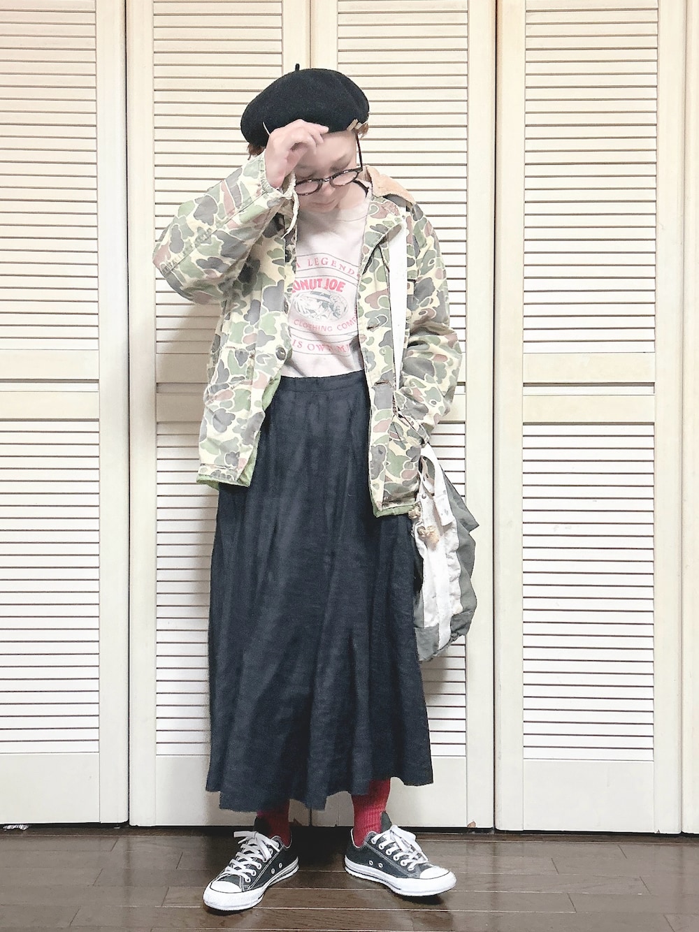 WEGOCONVERSE¥7,70008Mab¥8,690古着古着MILITARYこの画像から似たアイテムを検索できます1,61744お気に入り (23)440ぽん。さんへのコメントNO COMMENTコメントはスマートフォン用アプリからご利用できます着用アイテムWEGOWEGOハンチング/ベレー帽 (ブラック系)ハンチング/ベレー帽探すZOZOTOWNで探す¥7,700CONVERSECONVERSEスニーカー (ブラック系)スニーカーサイズ:24.5cm着用コーデ:109件探すZOZOTOWNで探す¥8,69008Mab08Mabスカート (ブラック系)スカートサイズ:M-L着用コーデ:21件探すZOZOTOWNで探す古着古着ミリタリージャケット (グリーン系)ミリタリージャケット探すZOZOTOWNで探す古着古着スウェット (ベージュ系)スウェット探すZOZOTOWNで探すMILITARYMILITARYショルダーバッグ (グリーン系)ショルダーバッグ探すZOZOTOWNで探すぽん。のハンチング/ベレー帽を使ったコーディネート2026.3.3着用ブランドWEGOCONVERSE08MabMILITARYタグ#ベレー帽#ベレー帽×メガネ#ミリタリー#ミリタリージャケット#カモフラ#スウェット#ロングスカート#ショルダーバッグ#スニーカー#コンバース#古着MIX#古着女子#休日スタイル#VINTAGE#ヴィンテージモデル情報女性・158cm・48歳ショートヘアー似ているアイテムWEGO × ハンチング/ベレー帽CONVERSE × スニーカー08Mab × スカートMILITARY × ショルダーバッグぽん。@pon324 / 158cm / WOMEN / ショートヘアー0コーディネート0フォロワー注目のコーディネートアプリでもっと見るもっと見る