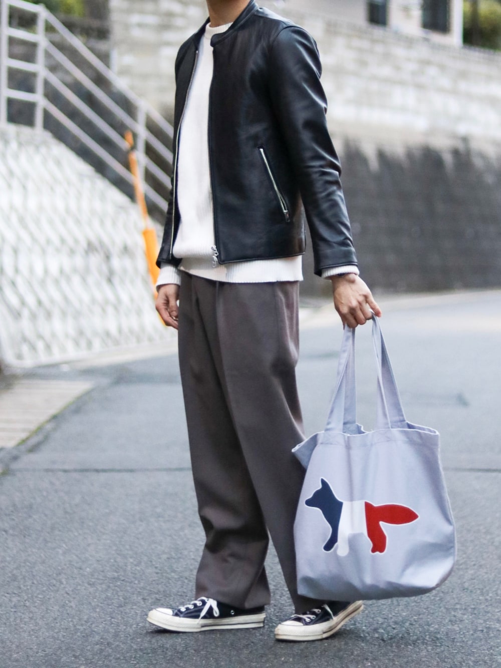 ponのトートバッグ「MAISON KITSUNE TORICO FOX TOTE」を使ったコーディネート