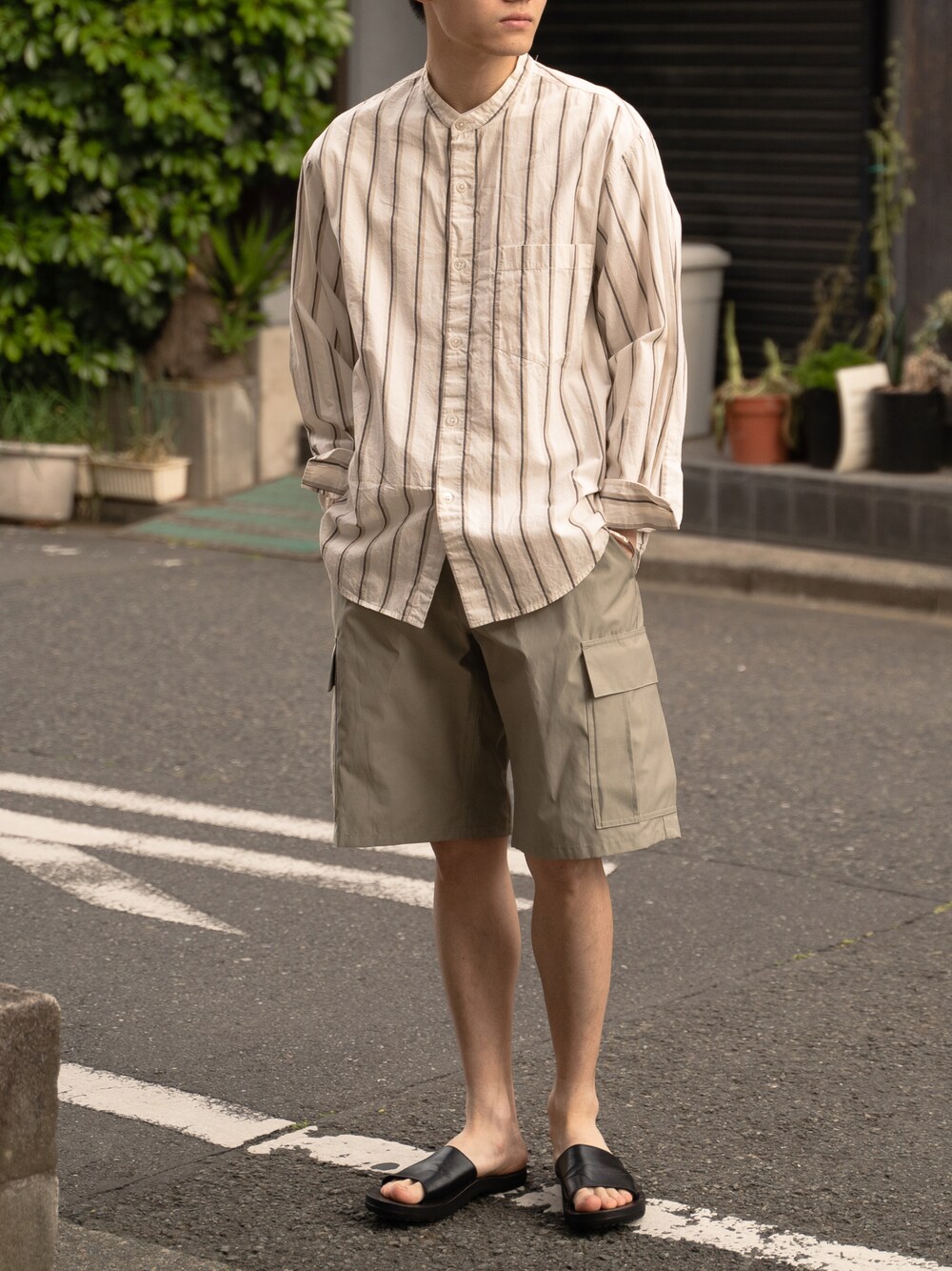 ponのシャツ/ブラウス「<Steven Alan> SLUB STRIPE BAND COLLAR SHIRT-LOOSE/シャツ」を使ったコーディネート