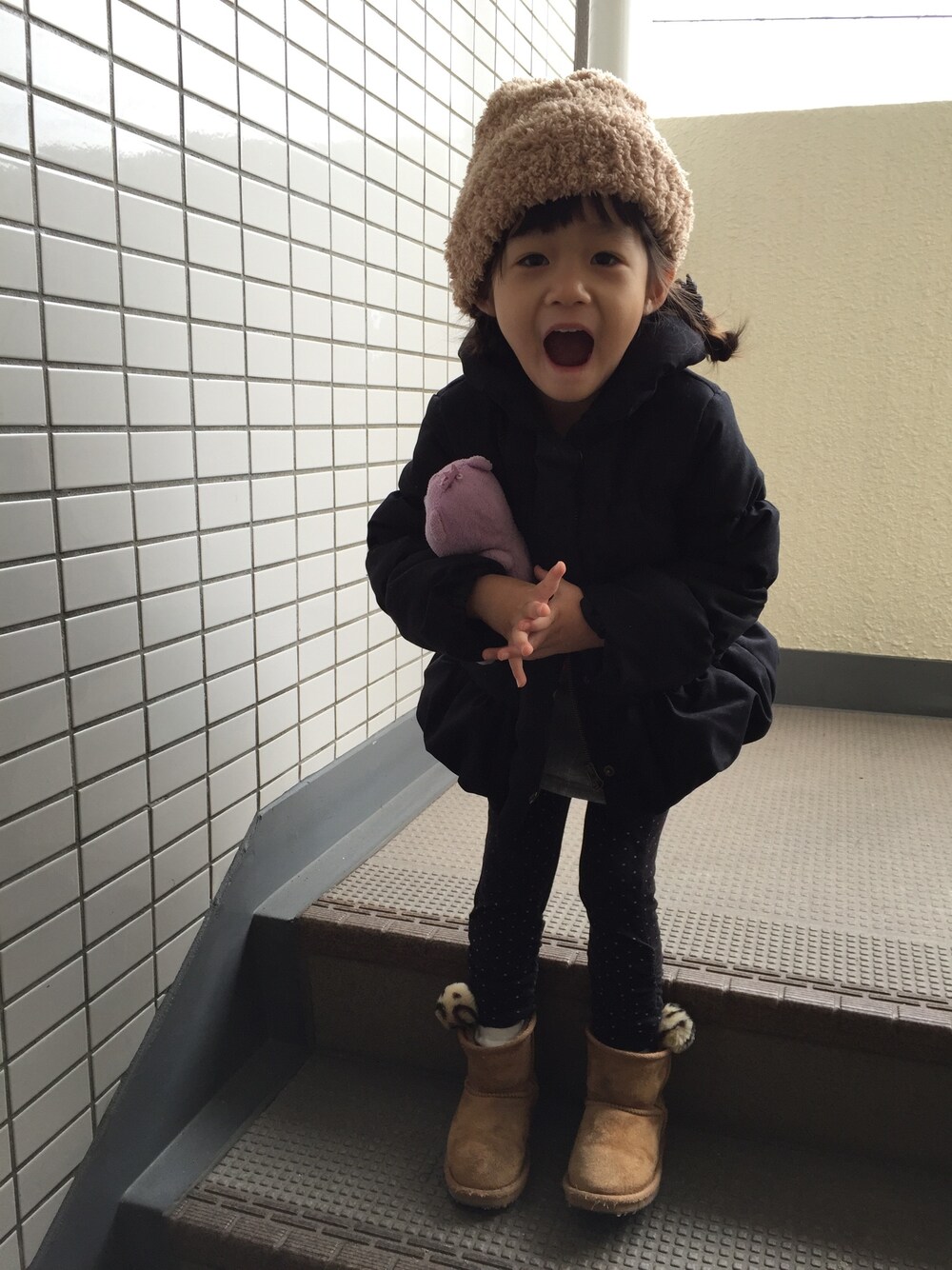 里帰りしてだいぶ経ちました。 そして急に寒くなってきたけん、 とうとうダウンコートおろした♡ 朝からお散歩で お菓子も買ってもらえて ゴキゲンな娘ちん。