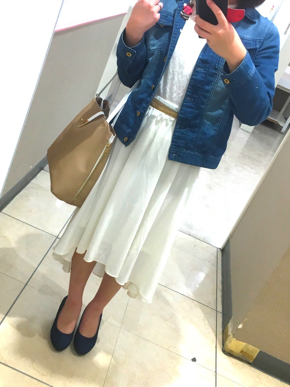 春っぽい感じにふわふわとしたコーデをしてみました!顔は見えてないですが春メイクをして気合十分です!