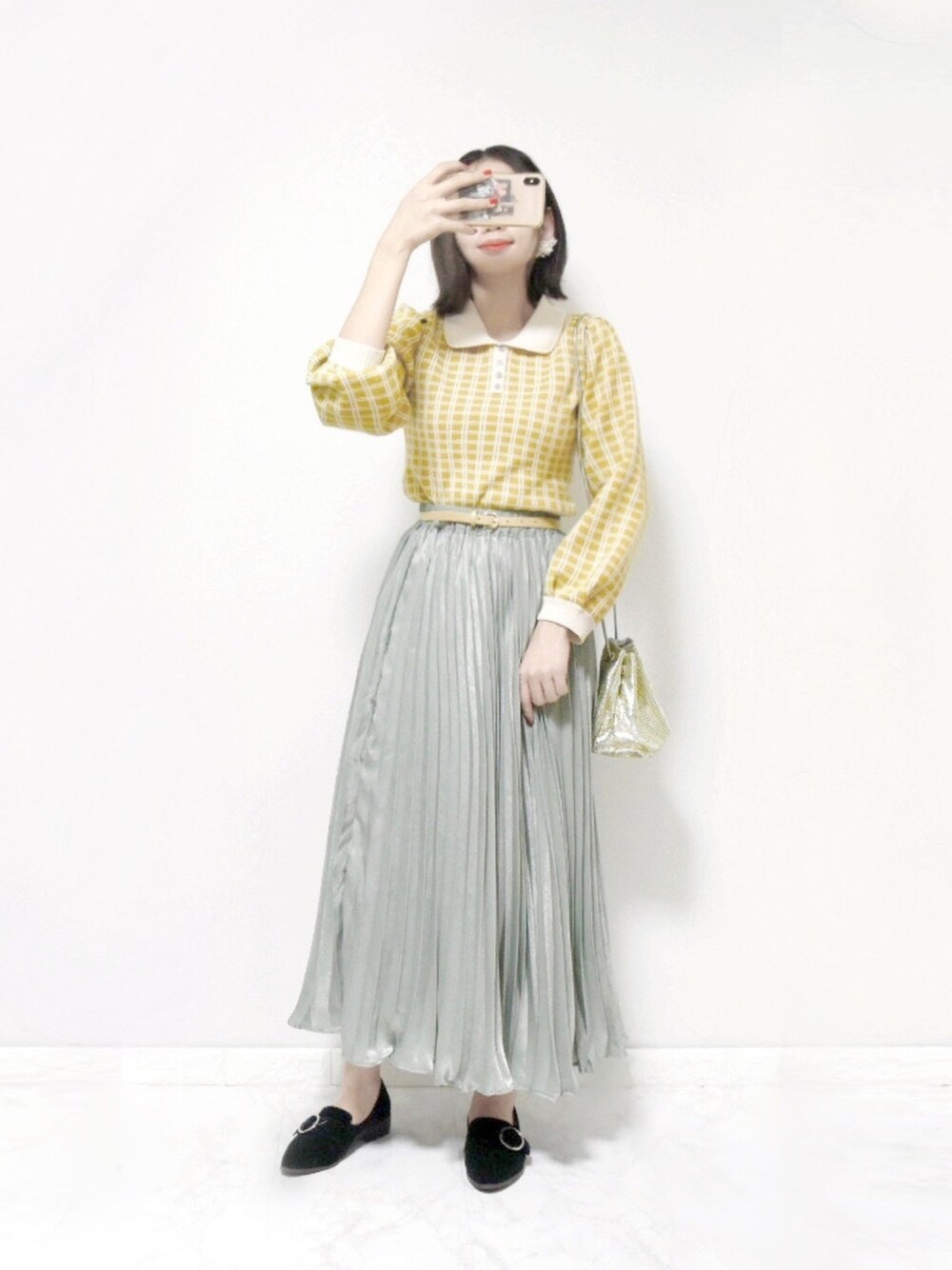 🌷🌷🌷 レトロポップ 今日は少しかわいく♡! レトロな雰囲気のデザインに ポップで明るいカラーのニットが めちゃお気に入り! 全体的にくすみカラーで揃えてみたよ🤞 バッグはたまたま寄ったWEGOで一目惚れした メタル巾着バッグ! 個性的だしいいなぁ!って買ったら 他のブランドでも似たようなの出てて まさかのトレンドアイテム!? たまにこんなコーデもいいよね🥺 Oriental Traffic👣 右25.3 左25.0 → 40 🌷Instagram🌷 director▶︎ piacere_ponner official▶︎ official_piacere