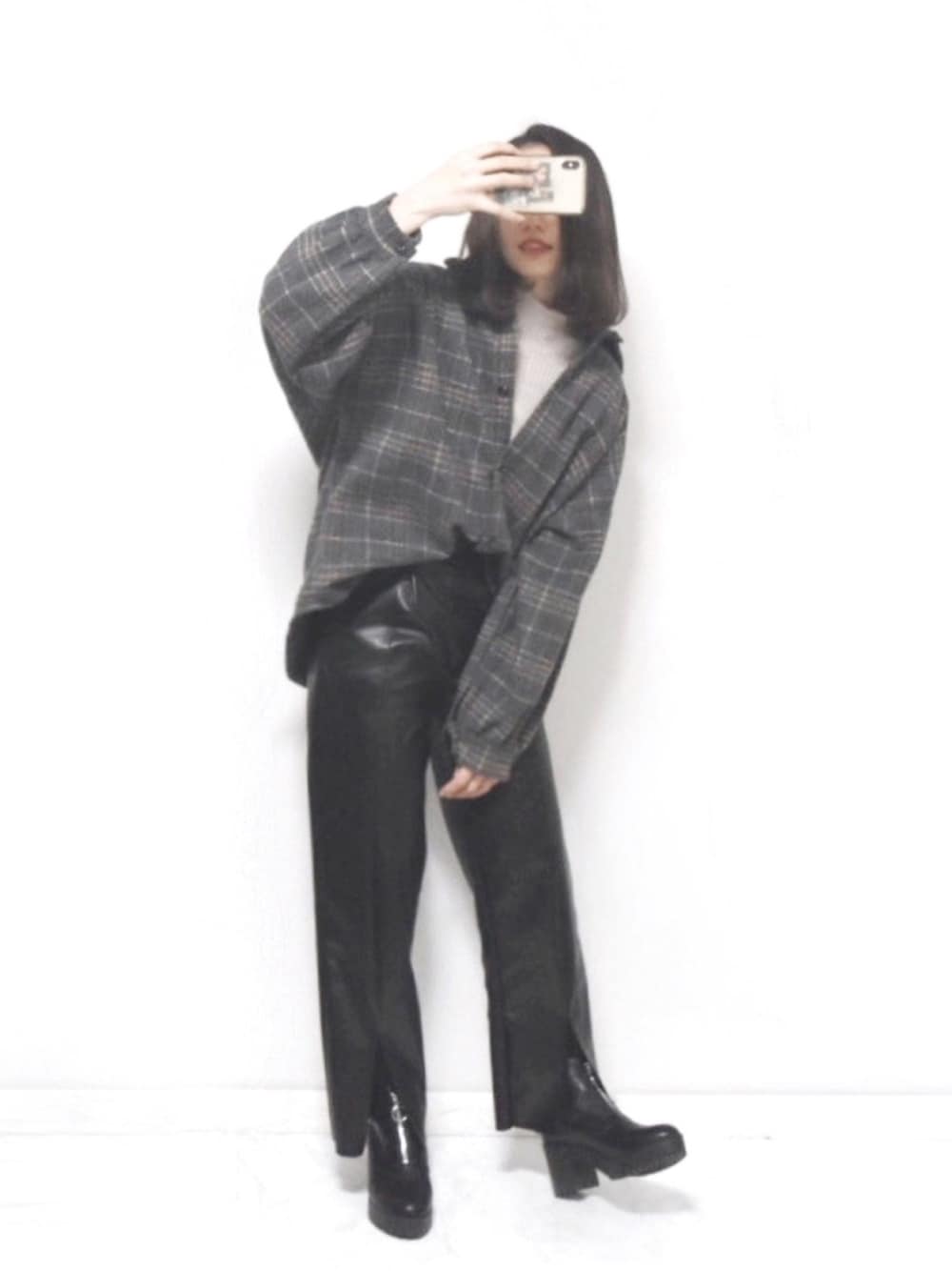 🌷🌷🌷 オンナマエコーデ✨ メンズのチェックシャツの中に シンプルなハイネックニット🧶 シャツはジャケットに近い厚さだからポカポカ! メンズ商品だけど、袖に少し丸みがあって かわいらしいシルエットだよ😘 レザーパンツは センターにスリットが入ってるから センターにジップがついた厚底ブーツを チラ見せさせていくぅ♡! Oriental Traffic 👣 右25.3 左25.0 → LL 🌷Instagram🌷 director▶︎ piacere_ponner official▶︎ official_piacere