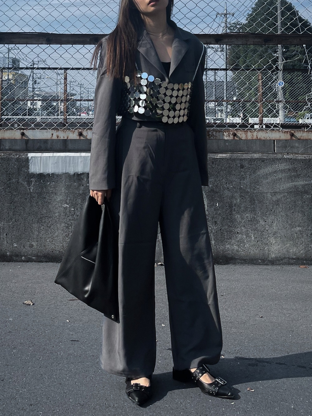 𝕡𝕠𝕟𝕟𝕦☺︎!のセットアップ「【 セットアップ 】ショートテーラードジャケット & ワンタックワイドスラックス SET【 韓国製 】」を使ったコーディネート