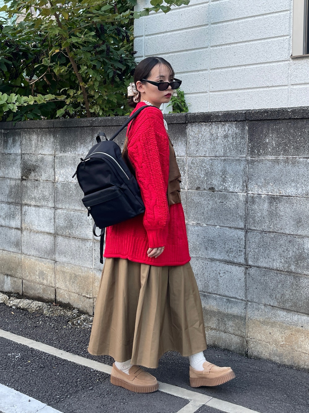 カジュアル過ぎず、トレンド感のあるプレッピーなスタイルでまとめてみました🫶🏻 秋を意識してブラウンを合わせつつ 小物は綺麗めに!! オーバーサイズのニットがインパクト強いので 髪はアップスタイルでまとめて すっきりさせました🍂