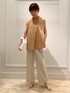 トップスは前後ろ2wayで着ていただけます♡ 素材感も伸びてすごく楽です^ - ^ パンツは麻が入ってて夏でもサラッと涼しげに着ていただけます♡ お勧めです^ - ^