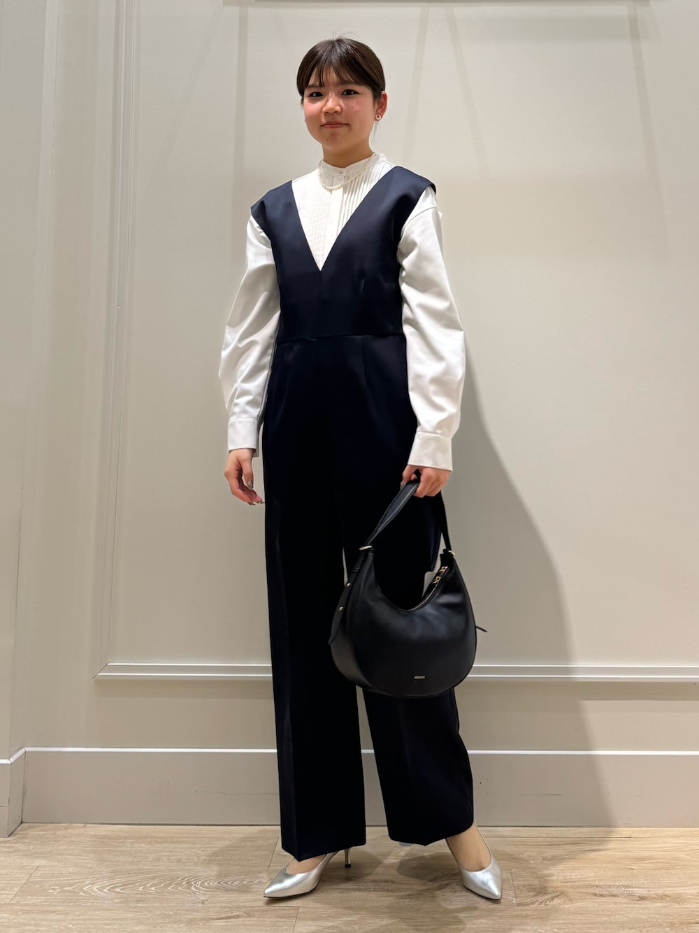 ㅤㅤㅤㅤㅤㅤㅤㅤㅤㅤㅤㅤㅤ サロペットは切り替え位置が 高めに作られているので、 スタイリッシュな着こなしが とてもしやすいです! 程よい光沢感が上品さもプラスされ セレモニースタイルにピッタリです( ˘͈ ᵕ ˘͈ ) 中のブラウスはタックプリーツが 前面に入っており、 Vネックのジャケットや ジャンパースカートとも相性◎です!