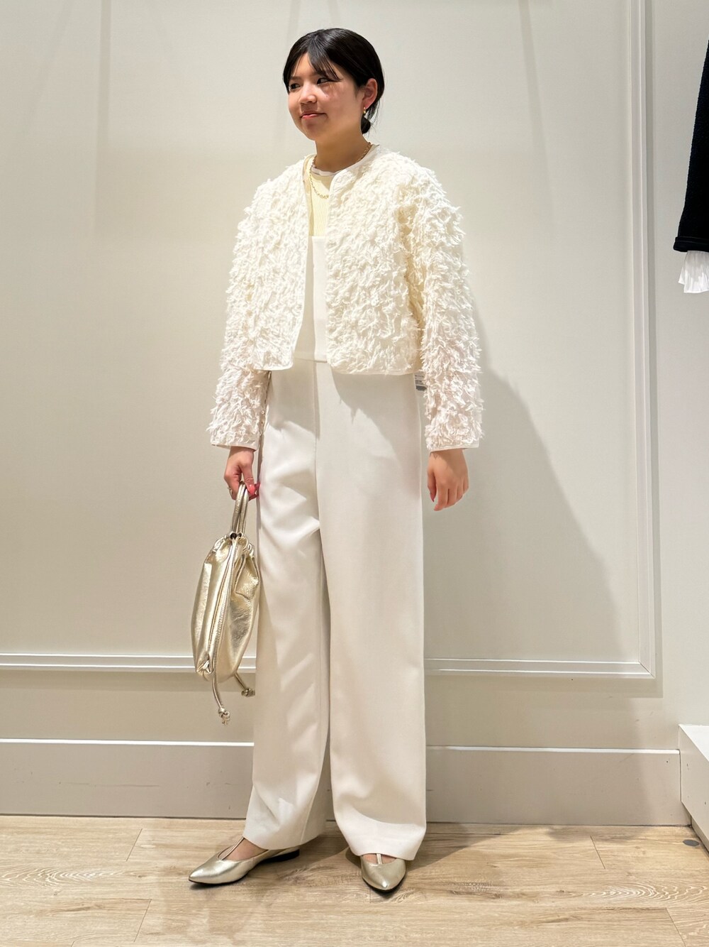 sophiのジャンプスーツをメインにしたコーデ♡ 【ジャンプスーツ】 オールシーズン使って頂けるお素材で、 夏だとタンクトップと合わせても可愛いです♡ ストレッチがしっかりと効いていて、 しゃがんだり、走ったりしても問題ないので、 ママさんにもとてもおすすめです♡ 【インナー】 薄手のインナーを中に仕込み、 スッキリとした印象になるようにコーデしました。 身幅のスッキリしたジャケットとも合わせやすいです♡ 【ジャケット】 毛足の長いふわふわなジャケット♡ とても軽やかに羽織ることができます。 丈もショートだけなのでスタイルアップしながらも 着用していただけます。 色々なお洋服合わせが楽しめ、万能な1枚。