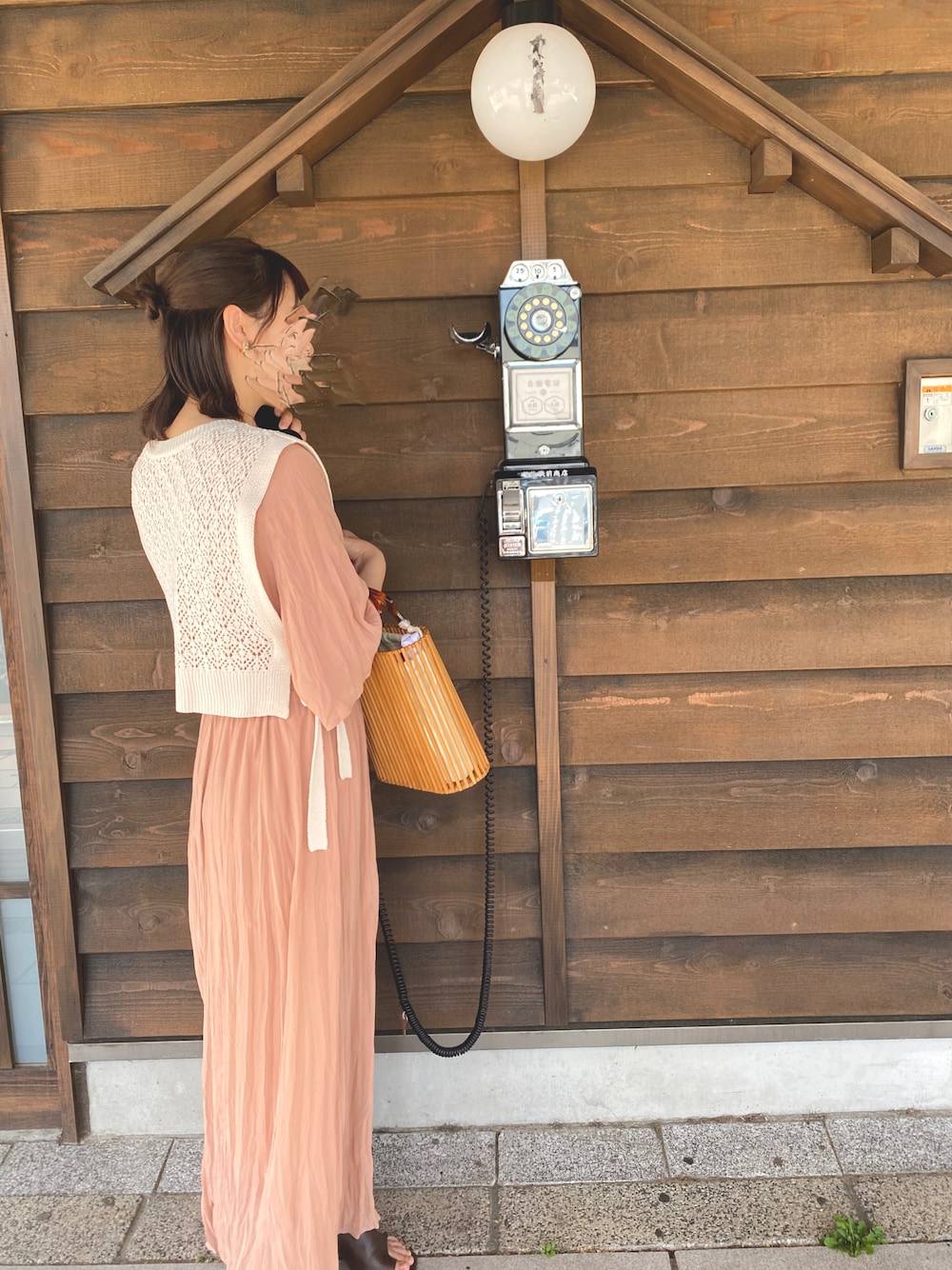 ぽんぬのワンピース「【web限定item】透かし編みベスト+シワ加工シアーワンピース」を使ったコーディネート