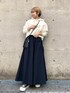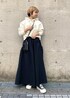 今回はカジュアルな印象のスタイルにしました。 スウェット×ナイロンスカートで今年らしい雰囲気のコーディネートにしたことがポイントです。