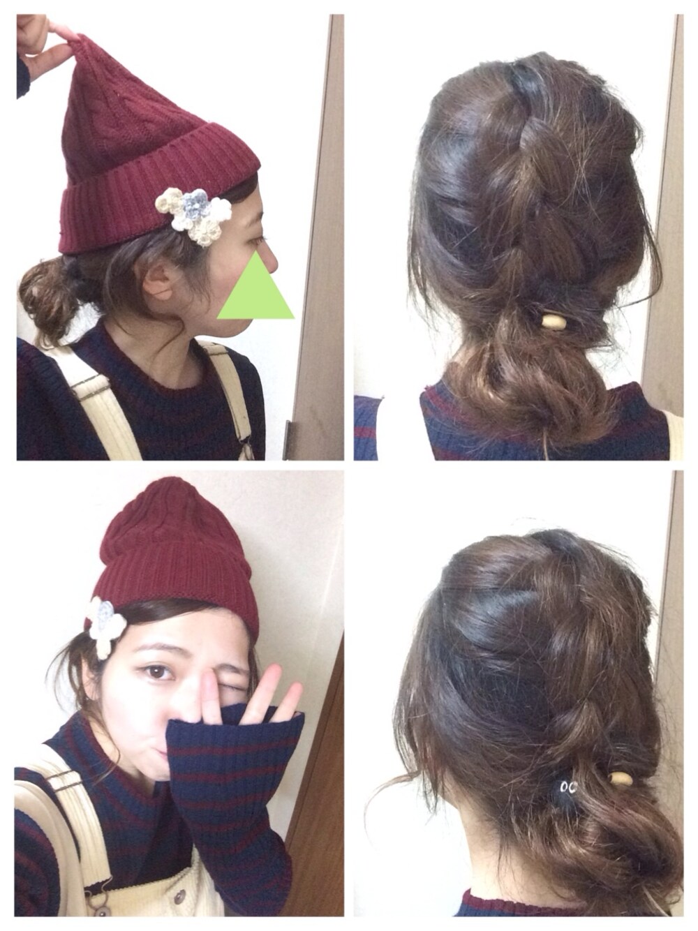 トップから編み込み くしゃくしゃっとお団子にして完成(^^) かんたん*・゜゚・*:.。..。.:*・'(*゚▽゚*)'・*:.。. .。.:*・゜゚・*