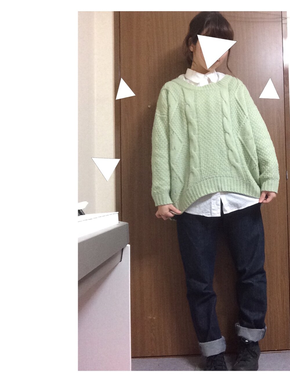 シンプル(^^) ニット×シャツはとても好きです(^.^)