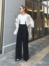 2WAY シルエットサス付きチノパンツ デザインサイドボタンでフレアシルエットが魅力のチノパンツ! 雰囲気を変えて、サイドボタンを外してワイドシルエットにもできます◎ 着用 S