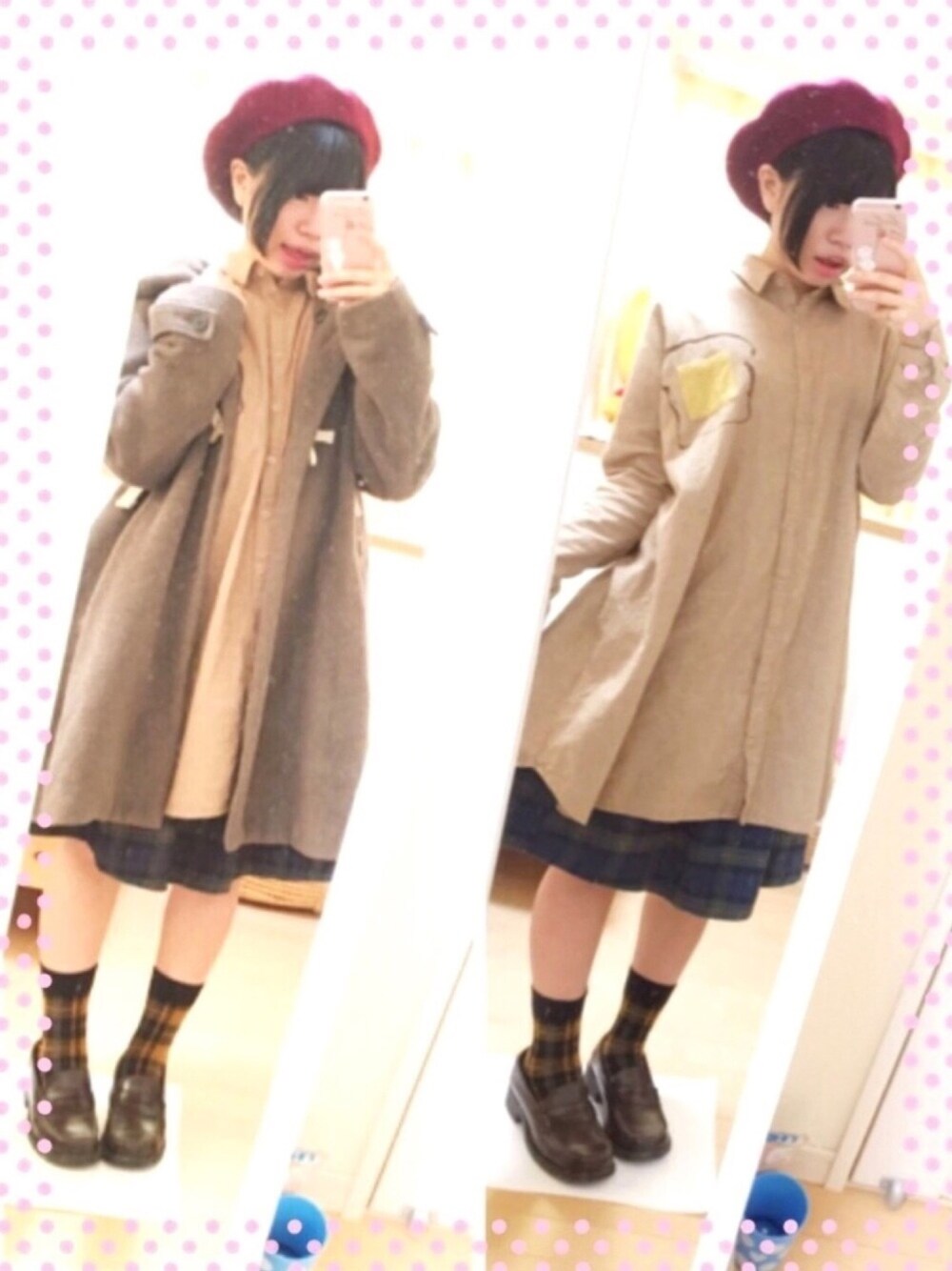 みなさんこんちにわ! チェック×チェックコーデです(^O^☆♪ スカートに深緑のチェック、靴下に黄色のチェックをつかって遊んでみました☺️🌈 赤色のベレー帽をつかってさらに遊び心を取り入れてみたり😚🤞🤞🤞 他はブラウンでまとめて統一感を出しました❣️ この日はわたしの大好きなブランドのバイトの面接を受けてきました🙊💕 きっと年明けすぐに嬉しい発表ができると思います!!!! 楽しみにしておいて大丈夫だと思います笑 ではでは! 良いお年を❣️❣️❣️
