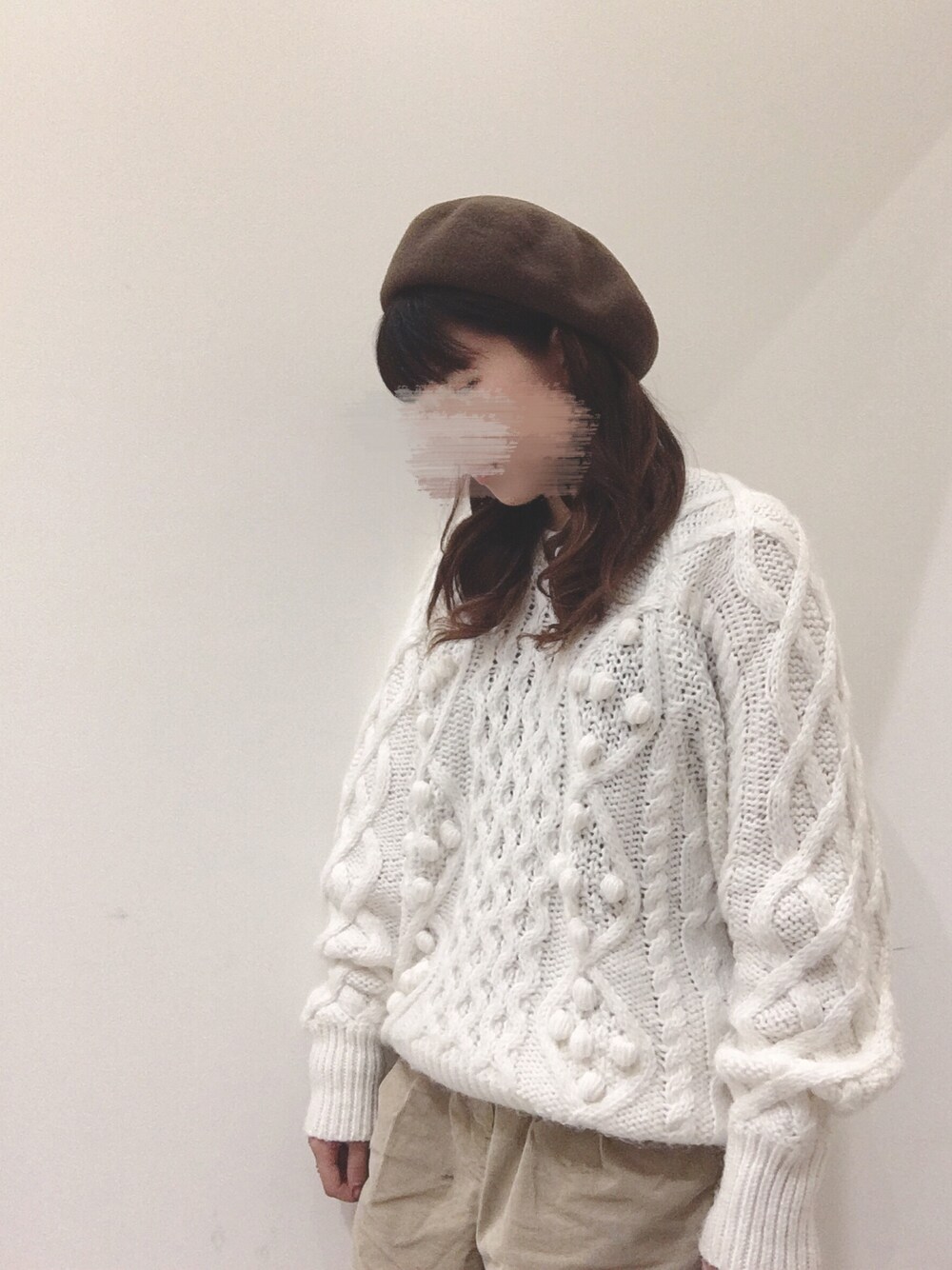さっむ!! ってなったのでニットデビューしました◎ 服は柔らかい色、ベレーとバレエシューズは締めるために暗めにしました🏃♂️