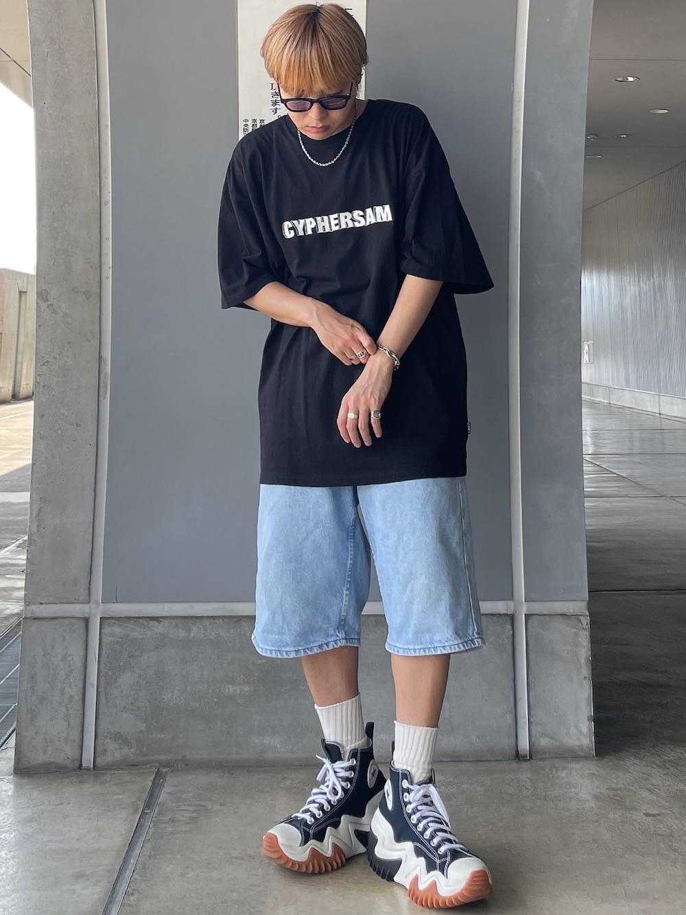 メインはInstagramなのでぜひ遊びに来て下さい👽 →→→@nang_369h シンプルにTシャツにハーフパンツ🥵 ポイントは足元にボリュームを持ってきてるところです❤️🔥 最近、暑すぎておしゃれどころではない、、