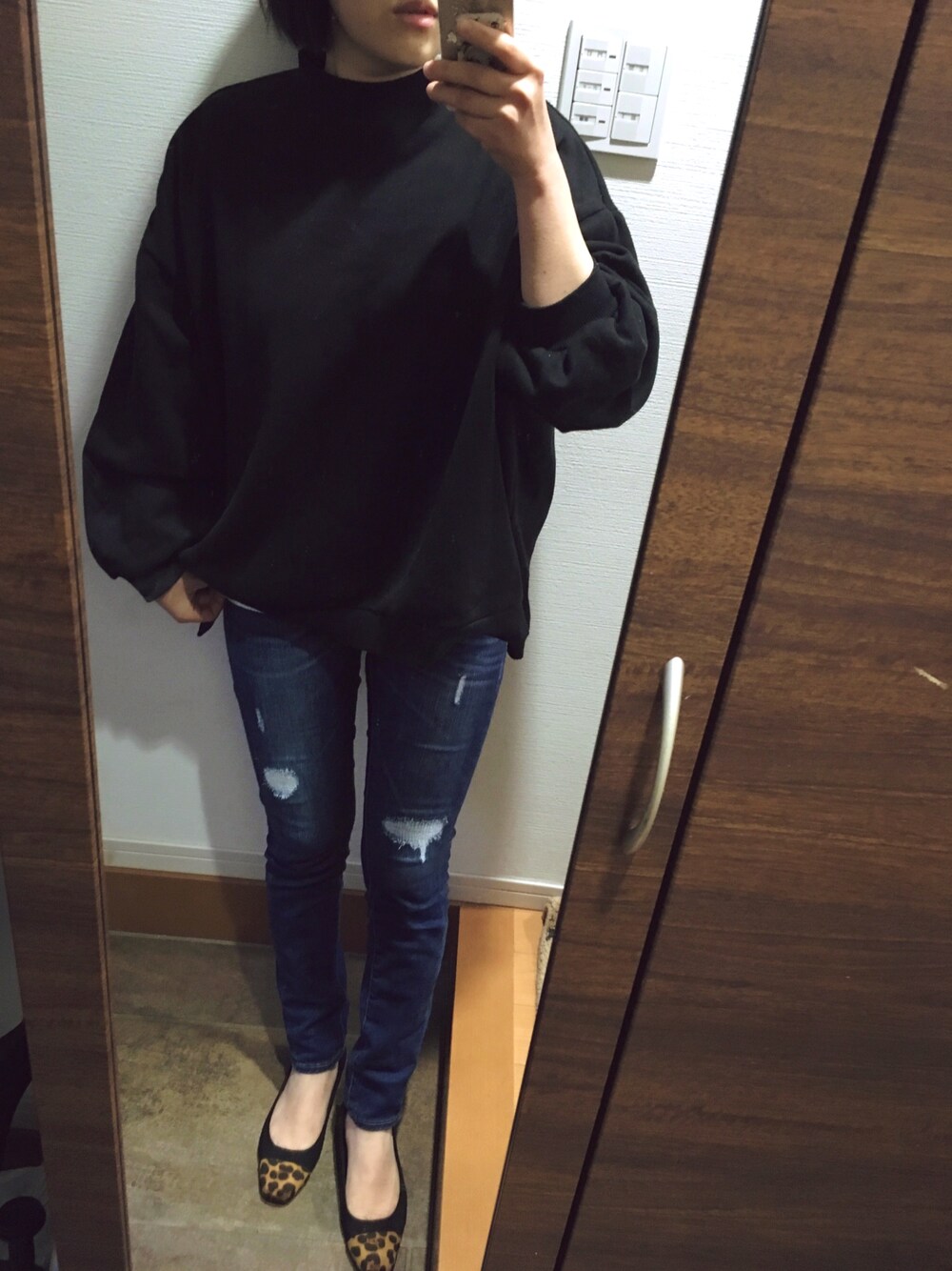 GU モックネックスウェット☺︎ × スキニーデニム × レオパードシューズ