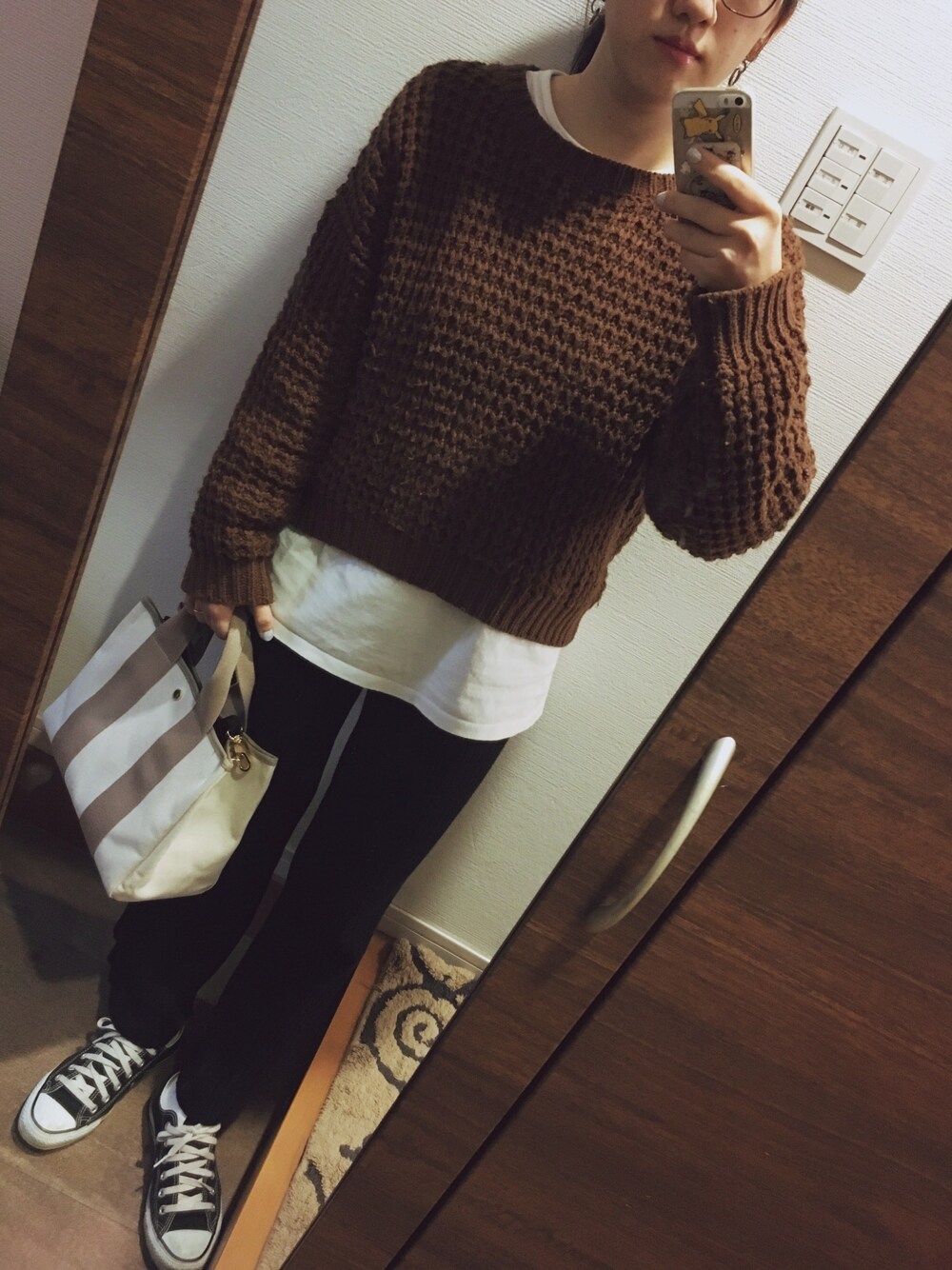 ニット着おさめのつもりで今日着ました☺︎ 明日からはもう完全に春物で良さそう♡ カバンは春色にしてみました