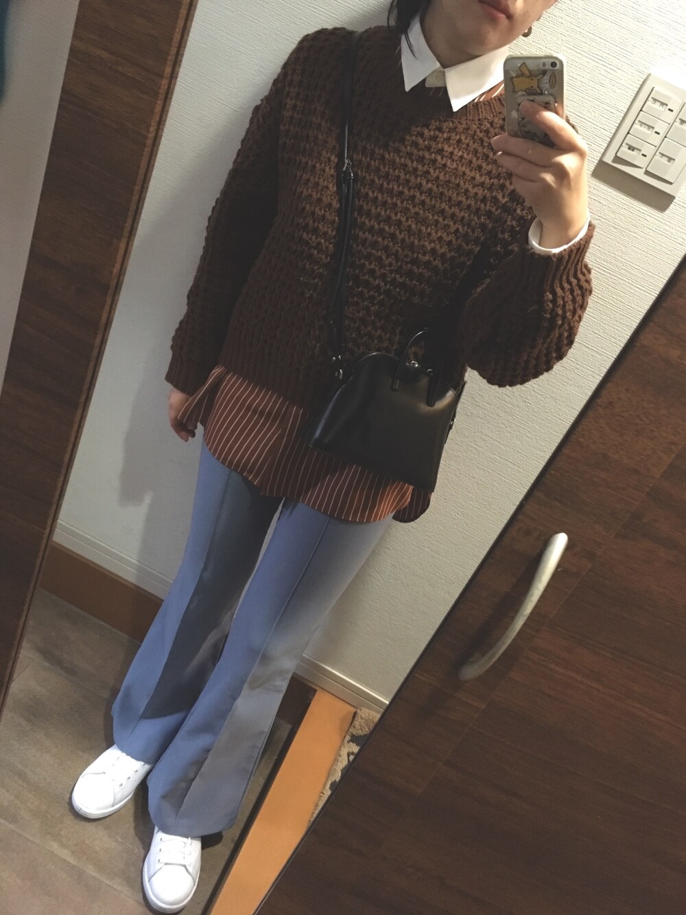 ユニクロのシャツをニットと☺︎ ブルー✖️ブラウン♡