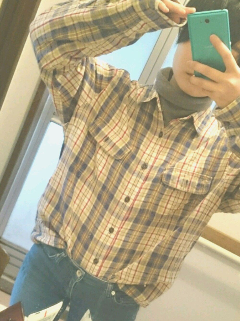 ブルー系のデニムパンツ、グレー系のトップス、ベージュ系のシャツ/ブラウスを着用したレディースの春コーディネートの1枚目の写真