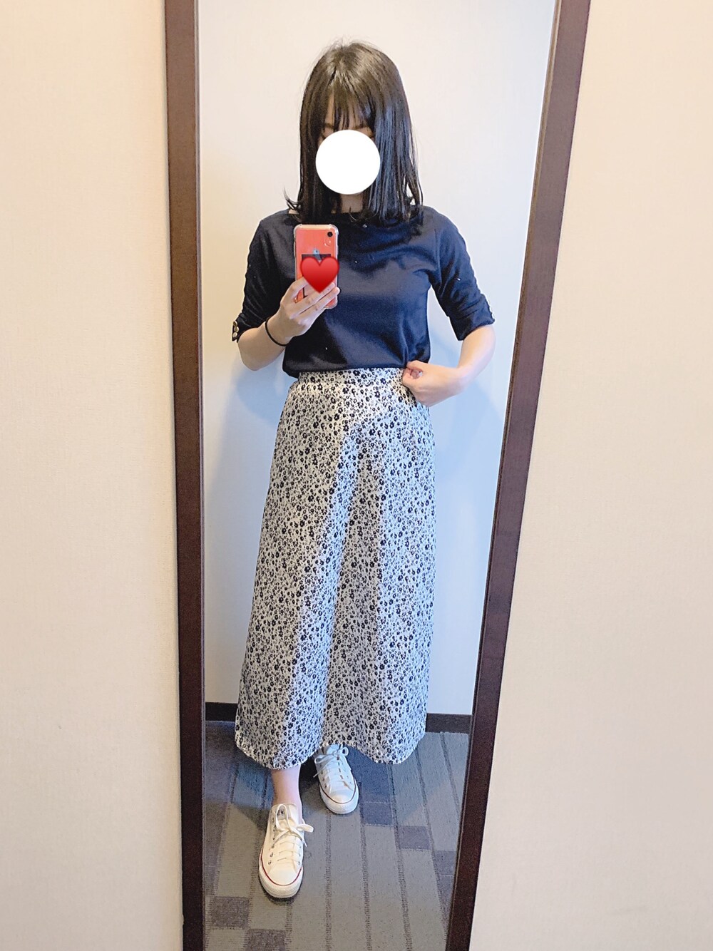 ご覧いただきありがとうございます!! トップスはボートネックになっていて 腕にゴールドのボタンがついています! スカートはとってもきれいな形で しまむらに見えないなあ⸜(* ॑꒳ ॑* )⸝ スカートのお花の色にあわせて トップスもネイビーを選びました♡ 少し寒かったのでマウンテンパーカーを 着て出かけました!!