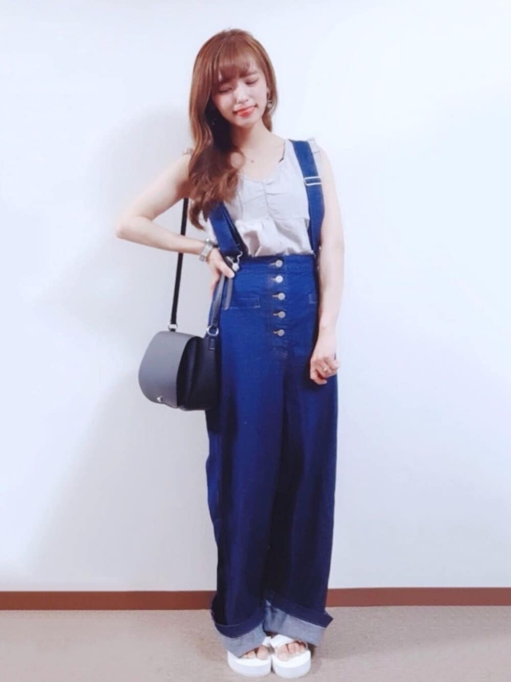 ぽーのシャツ/ブラウス「フリルスリーブバックレースアップトップス」を使ったコーディネート