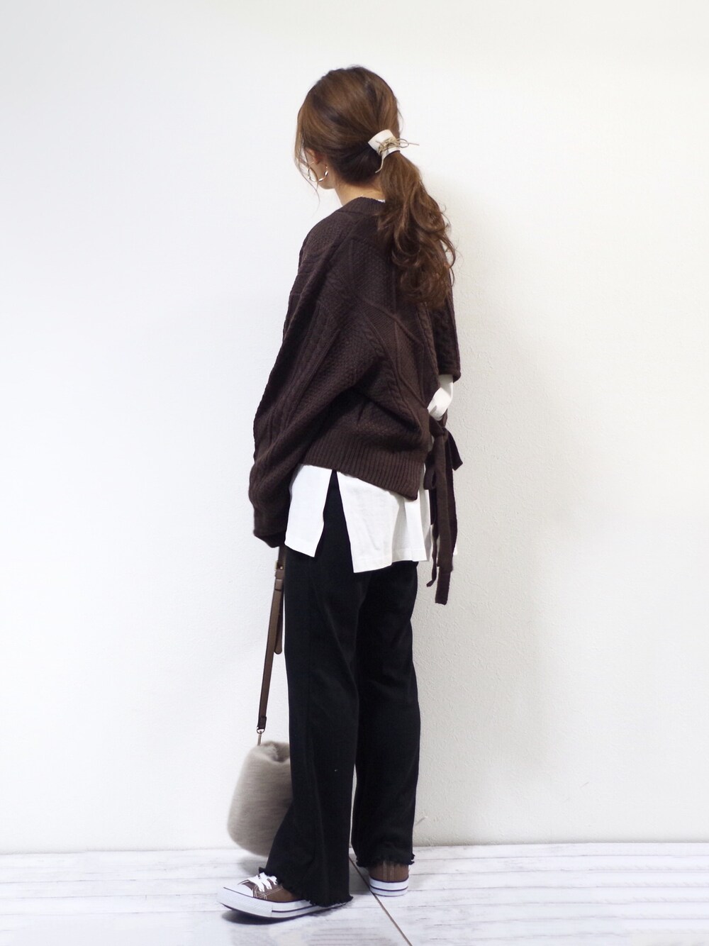ぽーのニット/セーター「【ZOZO限定】サキシマamp「バックダブルリボンノケーブルニット」」を使ったコーディネート