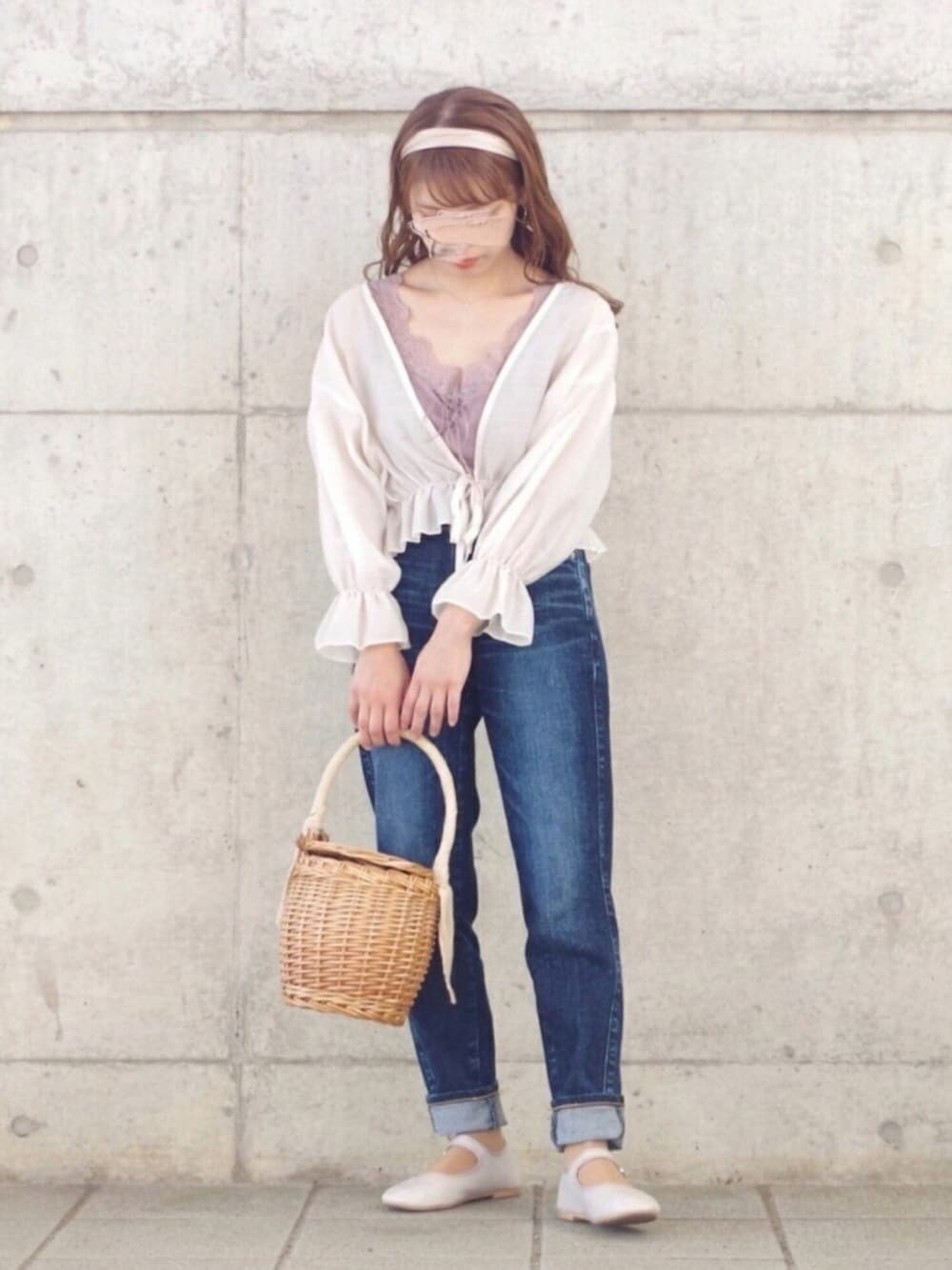 カジュアルガーリーコーデ⸝⋆⸝⋆ コーデを引き締めるダークカラーデニム✩⋆ ガーリーなトップスや小物と合わせると 大人っぽいスタイリングになるきがします🥰 シンプルアイテムコーデなときは、 袖が可愛いものやトレンドもの(今回ならシアー)を合わせてみたり、 ヘアアクセサリーを付けたりすると垢抜けて見えます⸝⋆⸝⋆ ▽肩幅をカバーする華奢見えコーデの提案 Instagram / pooo___24 ( アンダーバーは _ _ _ 3本です ) 低身長 / プチプラ / 淡色 / ゆるコーデ オススメコスメも不定期更新中✨ いいね、お気に入り、フォルダイン、 フォローもありがとうございます ◡̎✧