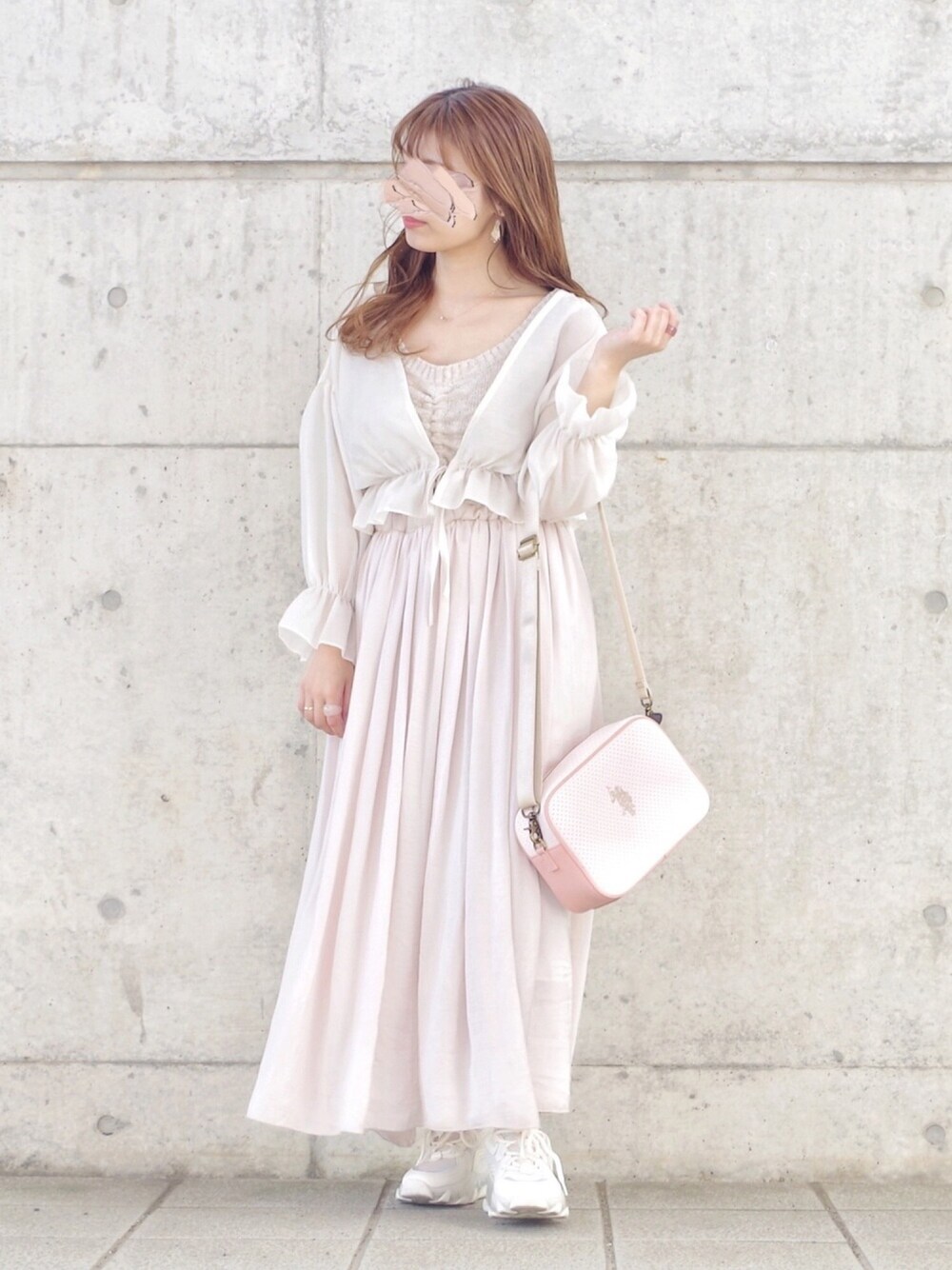 淡色コーデ𓂃◌𓈒𓐍 前々回投稿のコーデとすごく似ているけど、 今回はダッドスニーカーとショルダーバックを 合わせてカジュアルめにしてみました₍ᐢ..ᐢ₎ ༘♡ 全体的に薄めのピンク、ベージュ、アイボリー系で まとめたワントーンコーデはモテる🥰(わたし調べ) ショルダーバックのすこし濃ゆめピンクと 厚底スニーカーが良い味だしてる〜✌ ▽肩幅をカバーする華奢見えコーデの提案 Instagram / pooo___24 ( アンダーバーは _ _ _ 3本です ) 低身長 / プチプラ / 淡色 / ゆるコーデ オススメコスメも不定期更新中✨ いいね、お気に入り、フォルダイン、 フォローもありがとうございます ◡̎✧